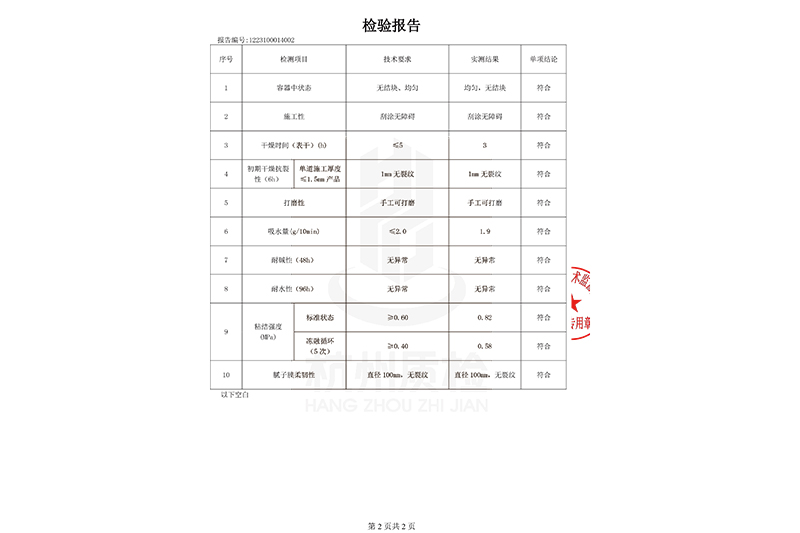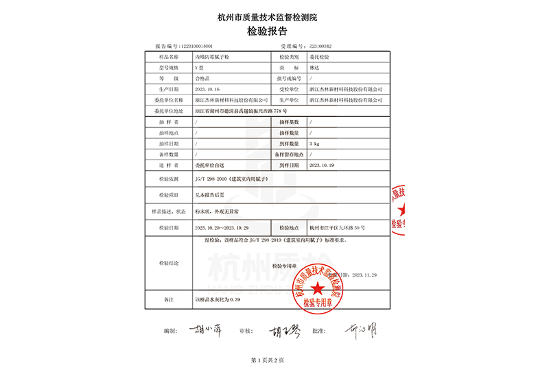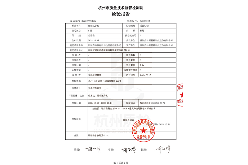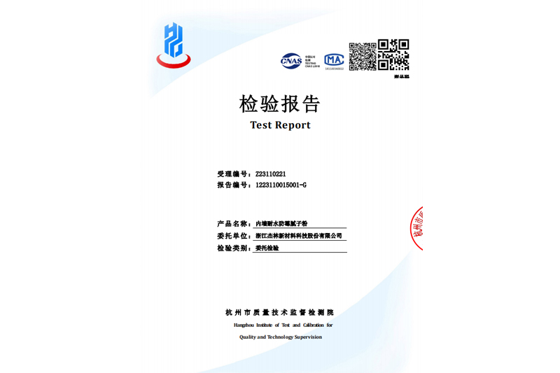 外墻膩子粉檢驗報告